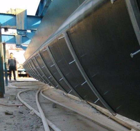 圆头预埋吊钉端部的圆形锻头用于挂钩,配套专用的鸭嘴扣吊具,可以实现快速挂钩。吊装荷载通过吊钉另一端的圆形端锚传递至混凝土。安装时需要使用半球形的橡胶固定吊钉,同时在混凝土表面形成半球凹槽,使得吊具可以挂钩起吊。